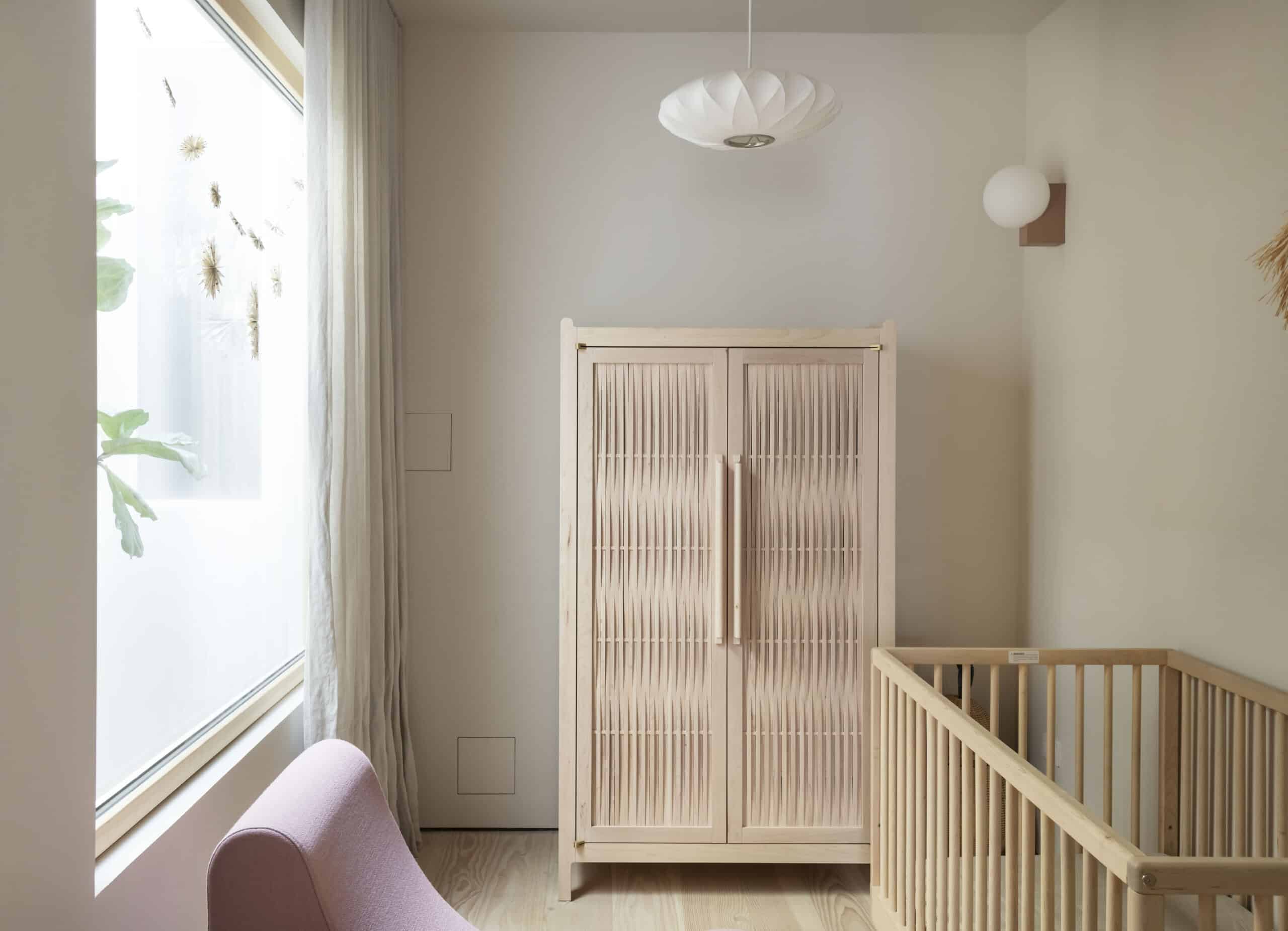 Upstairs are three bedrooms — one at the front of the building, one in the rear, and a flexible space in the middle of the floor, with an interior window, currently used as a nursery.