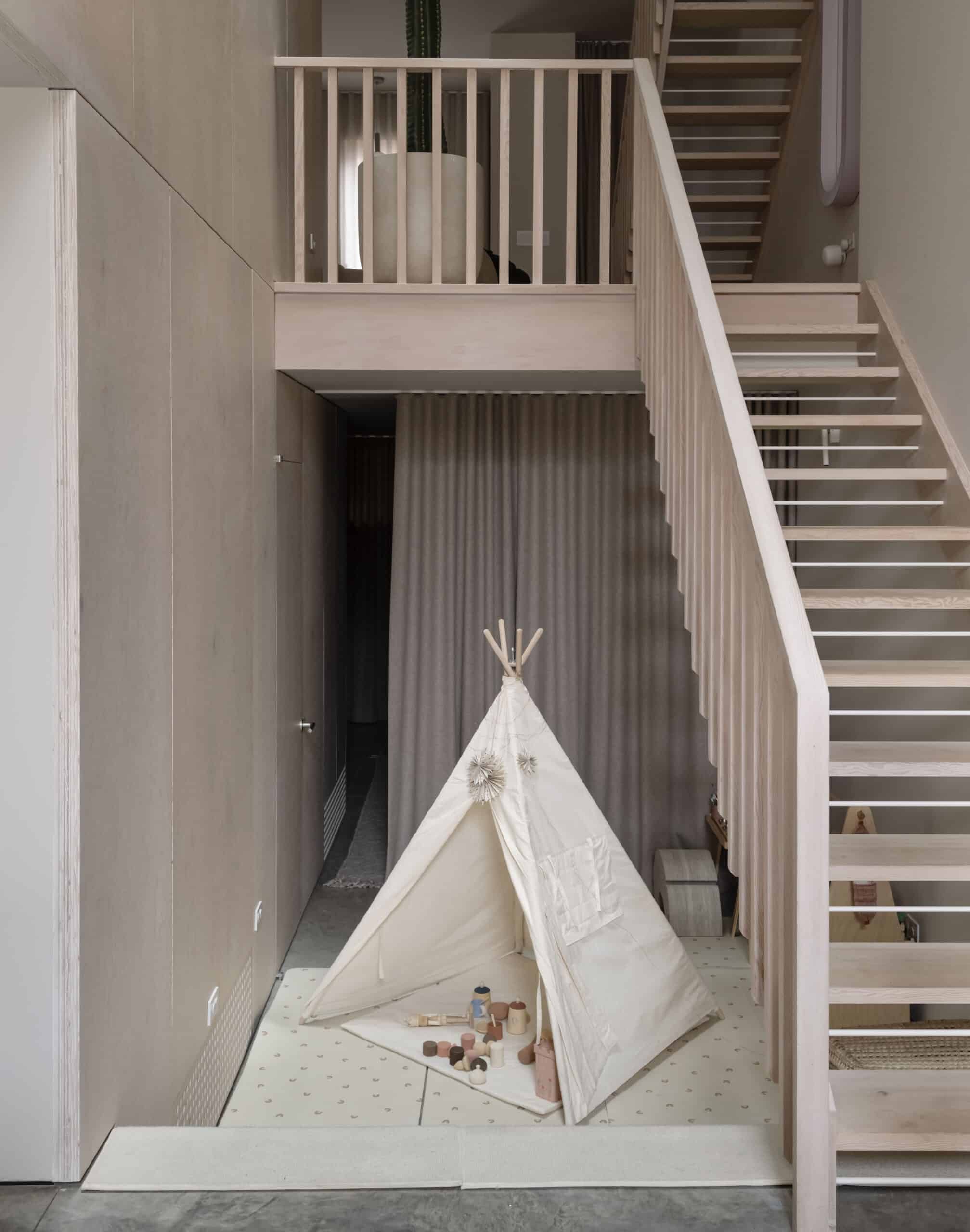 One end of the mezzanine is used as home office space.