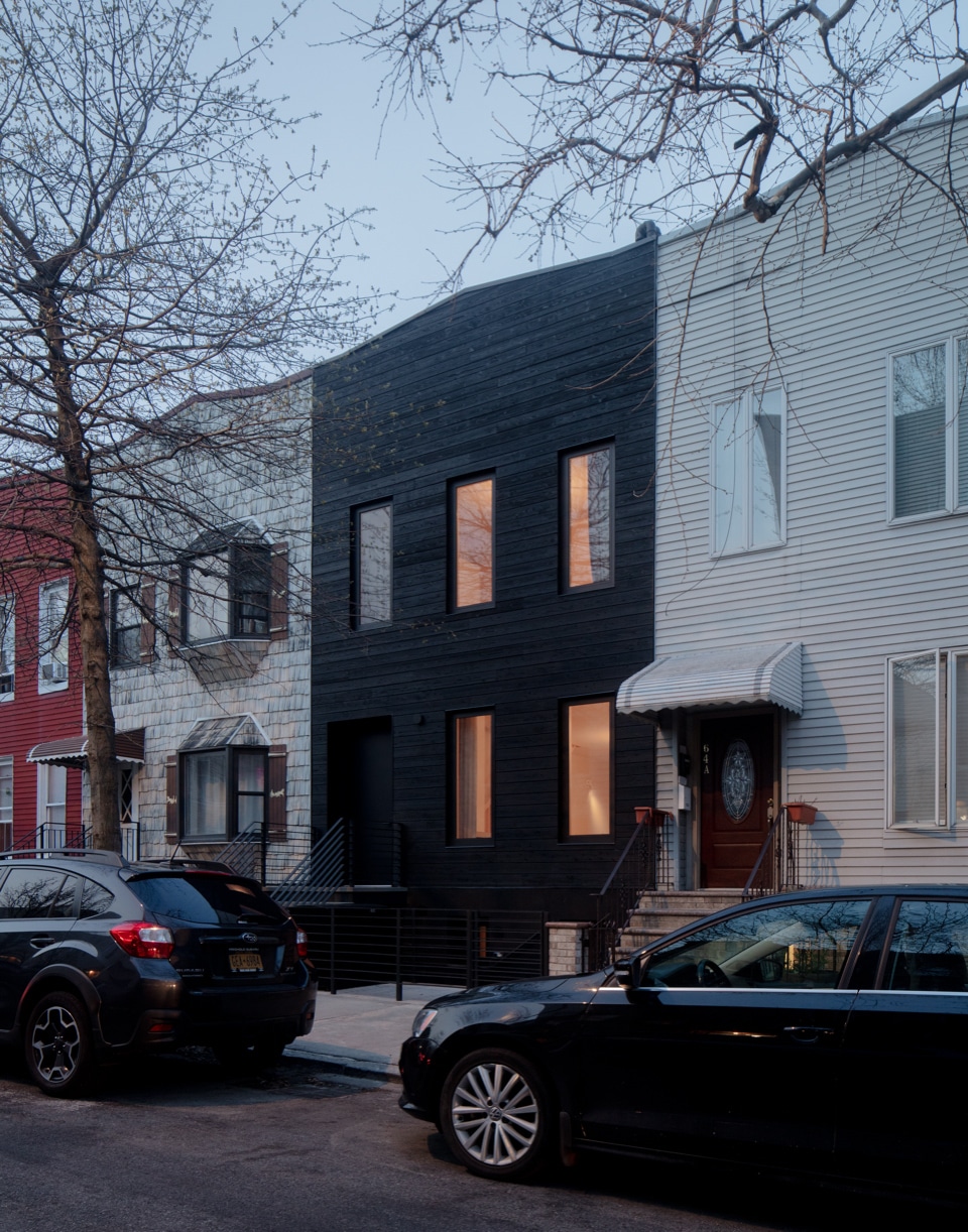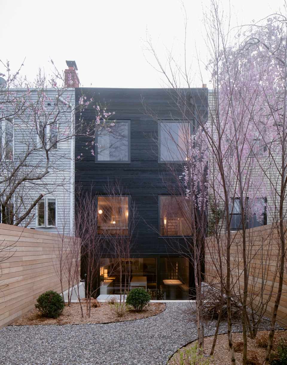The siding on both front and rear facades is cedar, sealed and weatherized in a Japanese wood-charring process called shou sugi ban. The resulting crackled texture “is not dissimilar to shake shingles,” Ransom said, and it renders the material very long lasting. It was sourced from Nakamoto Forestry in Portland, Oregon.